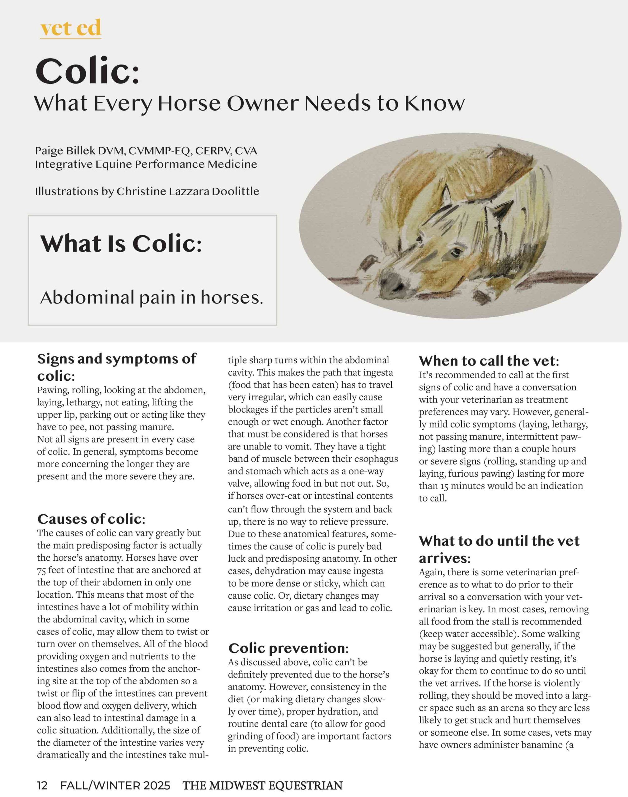 Have you read our latest vet article by Dr. Paige Billek? It’s very informative. She addresses important things every owner should know about colic. She also touches on several myths about colic.